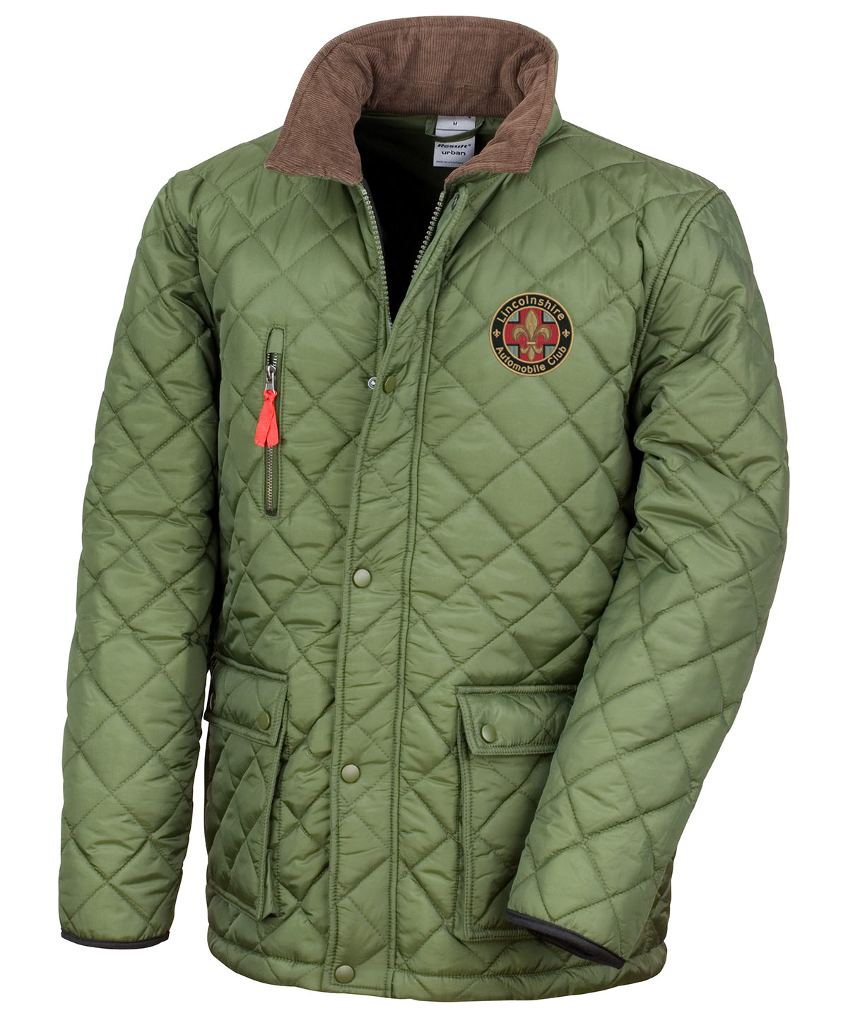 Corduroy collar. Stud front external storm flap. Heavy front 2-way zip. Stud closing patch pocket with handwarmer sides. Zipped external chest pocket. 2 x 2 diamond stitching. Sandwich quilted fleece lining. Rear studded saddle vents. Back panel detail. Hangtag. Fashionable quilted design. Classic styling with contemporary fit. Substantial weight and soft handle.