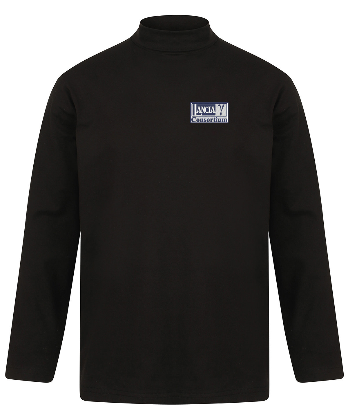 Cotton rich with double thickness rib roll neck. Reinforced shoulders and neck. Twin-needle stitching. Hemmed cuffs.