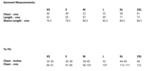 Size: XS 34/36″ S 36/38″ M 38/40″ L 42″ XL 44/46″ 2XL 48″
