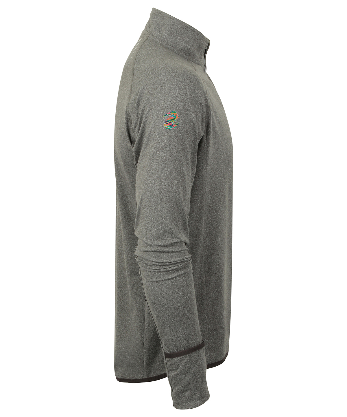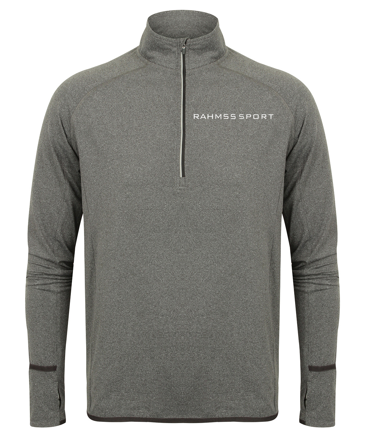 ¼ zip Jersey top with wicking finish. Long sleeves with thumbhole and fold over cuffs. Elasticated binding on cuffs and hem. Raglan shoulder seams with flatlock stitching and reflective dots detail on back of garment. 1/4 length zip with reflective trim and semi-automatic lock zip slider. Stand up self-fabric collar. Side panels. Key pocket on left back panel seam with concealed zip and inner headphone access hole. BSCI certified.