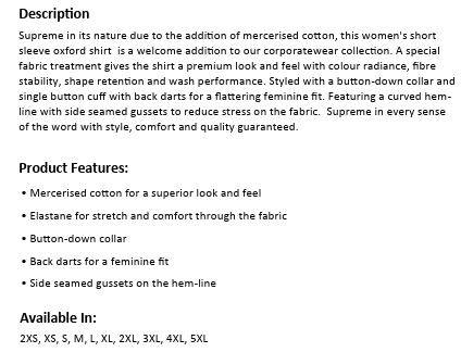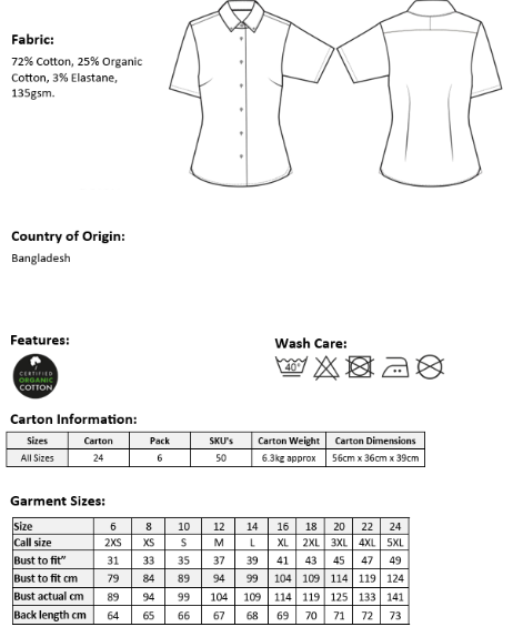 Smart and stylish shirt design in a fine poplin fabric with two fits available for both male (tailored and classic) and female (fitted and classic) styles. Concealed placket. Stylish yoke design. Darts on bust front hem and back panel for fitted shape.