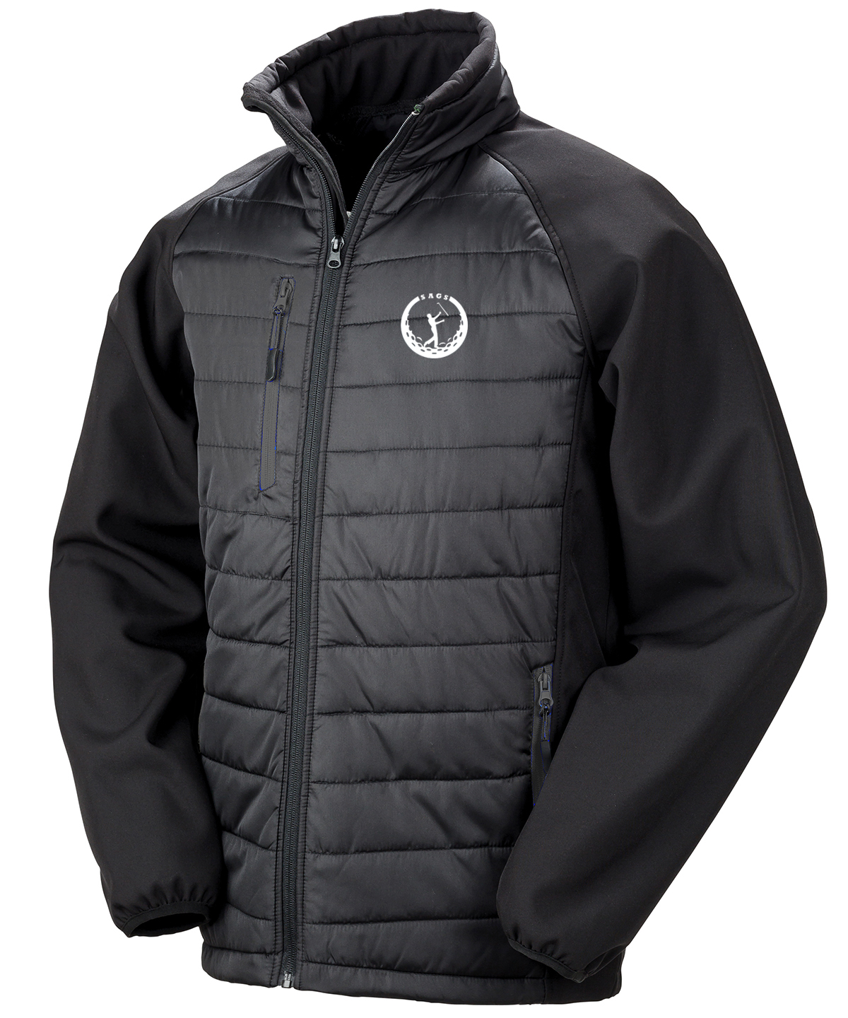Fabric Body: 100% polyester. Filling: 100% 160gsm REPREVE ® recycled polyester. Lining: 100% Polyester. Fabric Sleeve: 280gsm 2-layer mechanical yarn softshell comprising: Outer-Layer: 40% TOPGREEN® recycled polyester, 60% Polyester. Inner-Layer: 30% TOPGREEN® recycled polyester, 70% Polyester microfleece.