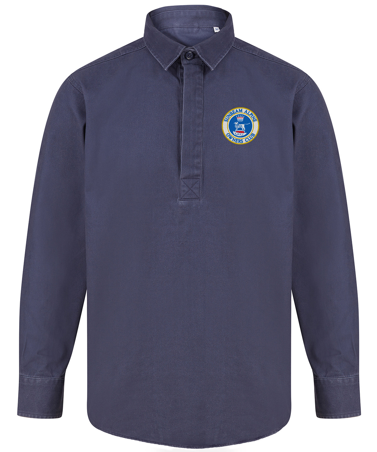 Heavyweight overshirt. Back yoke. Twin-needle topstitching. Plastic horn-effect buttons. Mitred patch pockets with flap. Mitred cuff and placket with button fastening. Curved hem. Forward shoulder seam.
