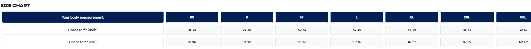 XS, S, M, L, XL, 2XL, 3XL, 4XL