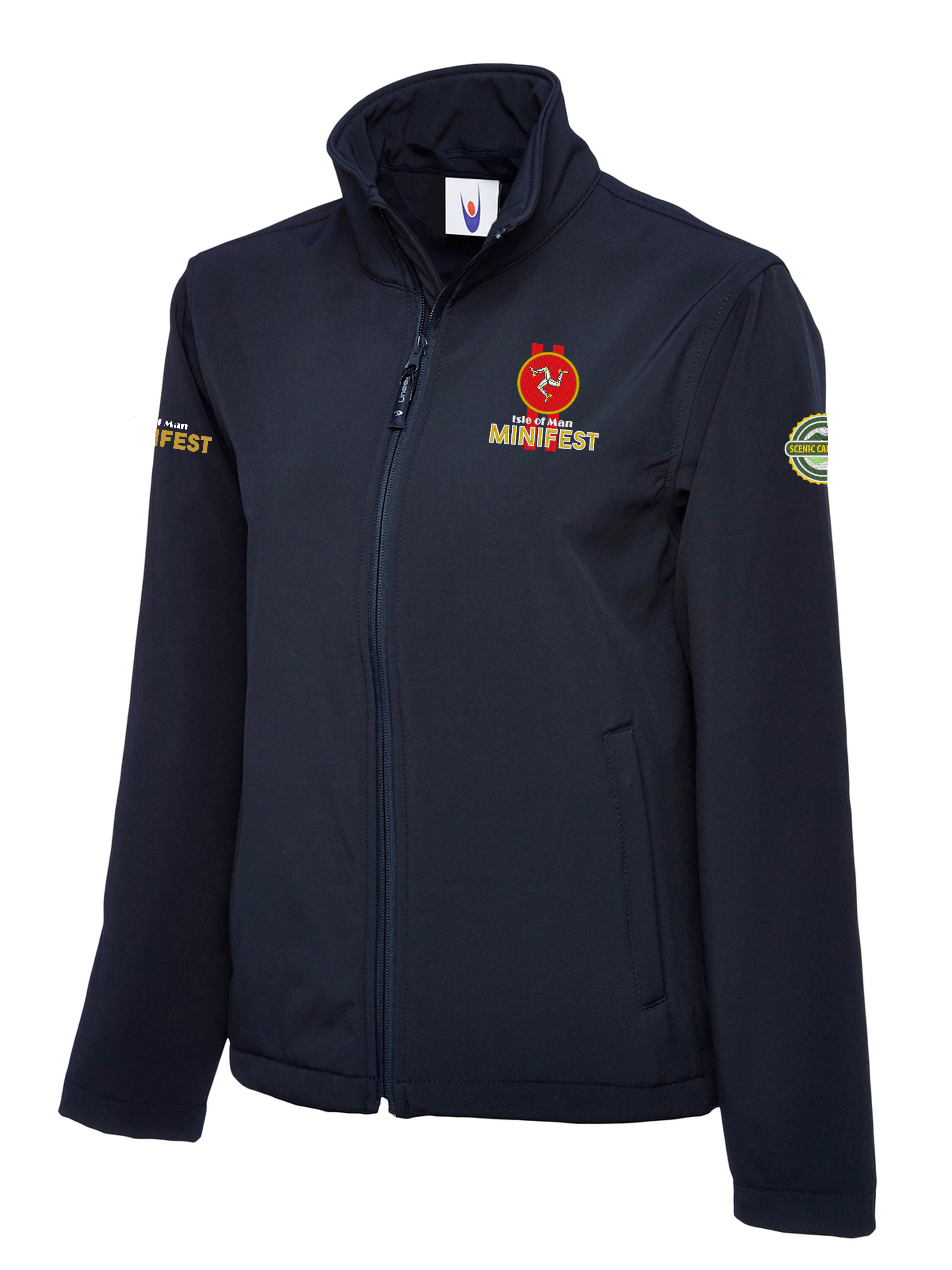 LEFT BREAST, SLEEVES AND WITH OR WITHOUT LARGE REAR IOM LOGO STITCH