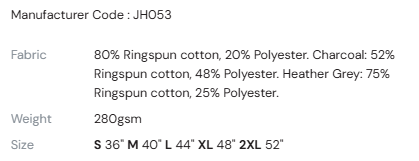 S, M, L, XL, 2XL