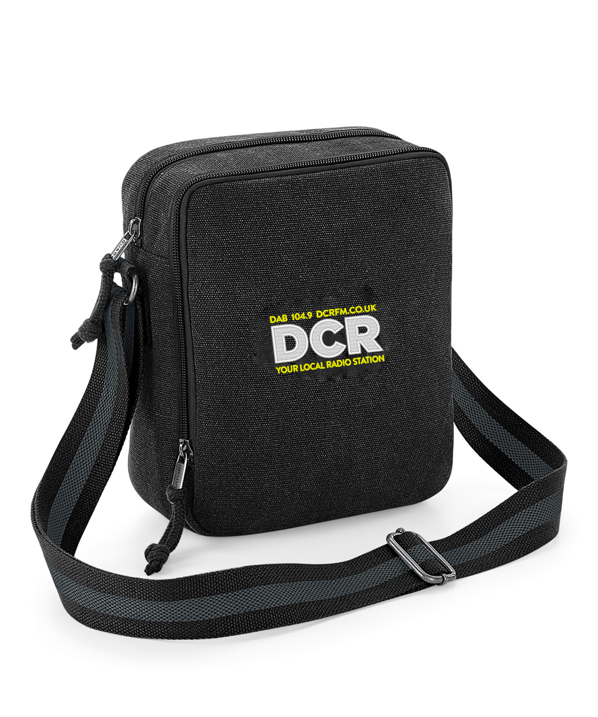 Front pocket. Zippered main compartment. Two-tone webbing strap. Adjustable shoulder strap. BSCI certified. Reach certified.